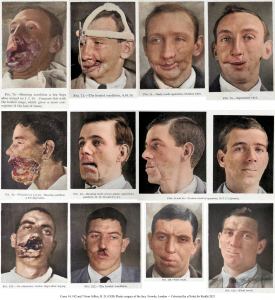 第一次世界大戰在歐洲引爆時,吸引了很多熱血的年輕人上戰場。但很快的,這些年輕人愛國情懷幻滅了,每天面對是戰爭的無情和身心的摧殘。其中壕溝戰造成許多士兵身體的傷殘。沒有被炸死的人,面臨的除了四肢傷殘,還有許多士兵顏面嚴重變形或是殘缺。